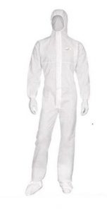 Buzo con capucha elástica, no tejido microporoso laminado (100% polipropileno SMS). Cierre por cremallera bajo solapa. Elástico de ajuste en la cabeza, la cintura, los puños y en los tobillos. Embalaje individual.